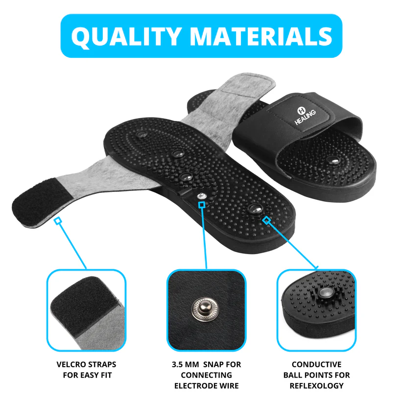 Whether you’re an athlete or an everyday citizen, being on your feet all day can be tiresome. Now, HEALING Foot Reflexology Slippers are the latest accessory for addressing sore and tired feet. With this product, you can connect your TENS device to harness the power of reflexology and increase your blood circulation. Not only will you relieve pain, but you’ll also feel relaxed.