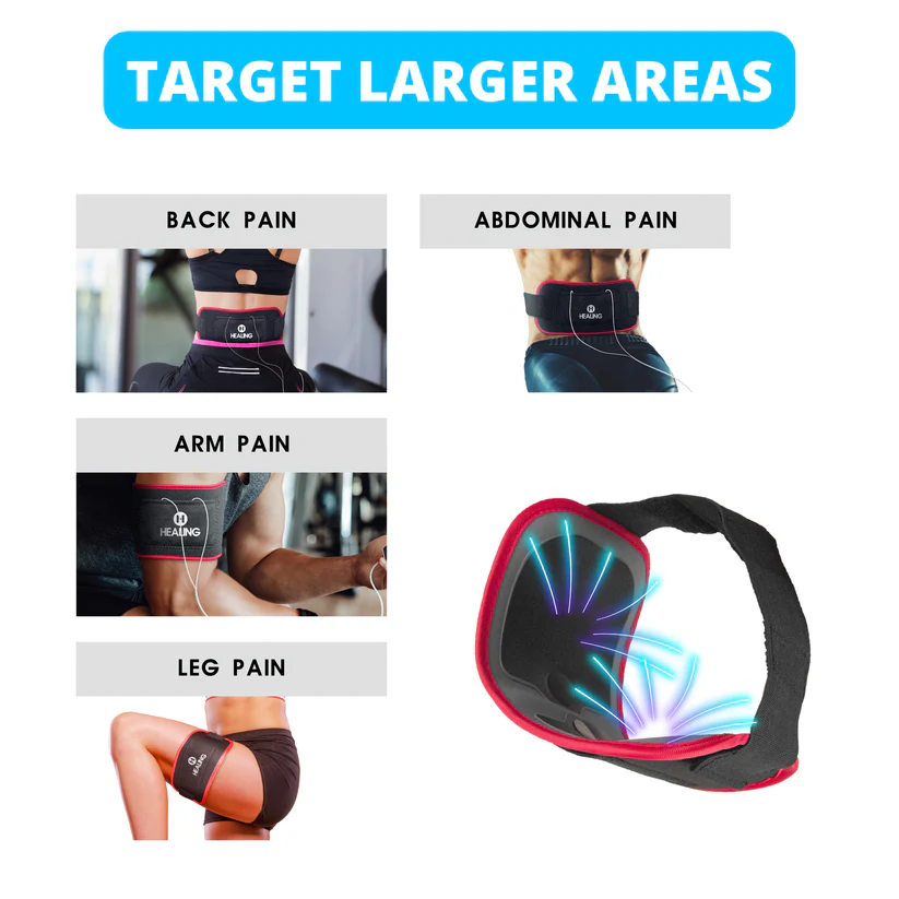 This belt is equivalent to eight different pads, covering multiple areas without wearing out the pads themselves. Choose your adjustable straps; use the longer one for the torso or the shorter one for the calf and leg. Once applied, set the unit on, and enjoy your HEALING device at your preferred strength and sensation.